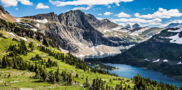 Glacier National Park is full of mountains, glaciers, and crystal-clear lakes. Hiking to Grinnell Glacier is an adventure. You will pass lakes that are so clear you can see fish swimming near the surface. The mountains rise high around you, and the cliffs are steep and beautiful.
