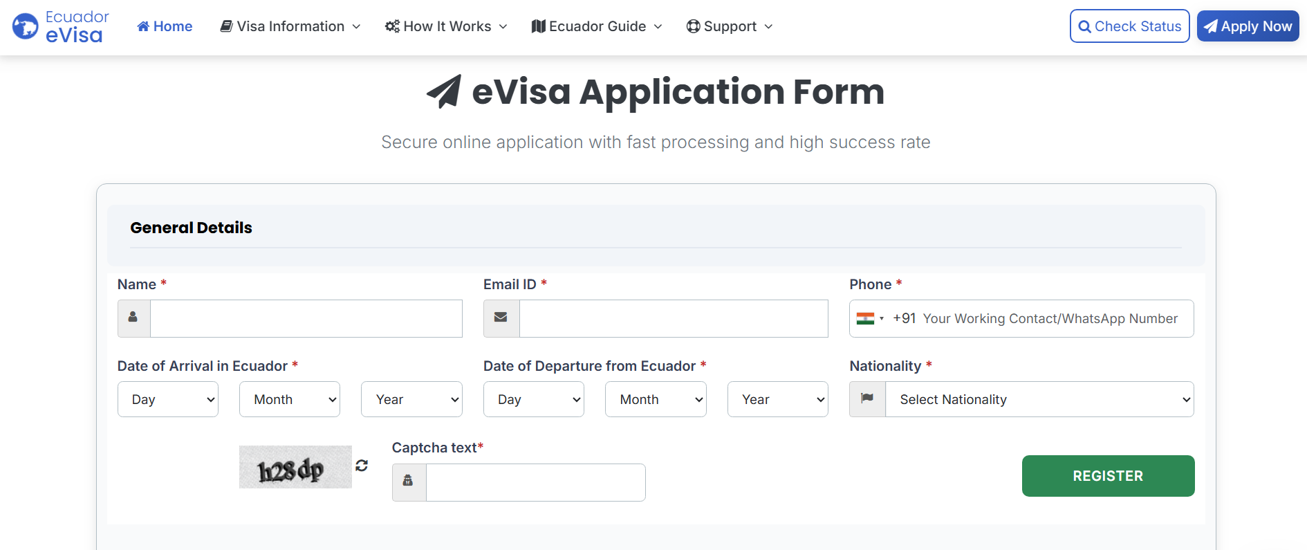 Step 3: If the eVisa route is available: fill out the Ecuador evisa application form and upload the required scans of your passport page, photo, and supporting documents. Then submit and wait for review.