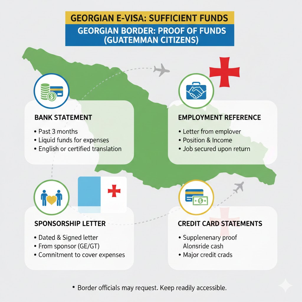Although Guatemalan citizens don't need the e-Visa, border officials may request proof of your financial ability to support yourself during your stay. Acceptable documents, which should be easily accessible (preferably in English or with a certified translation), include: