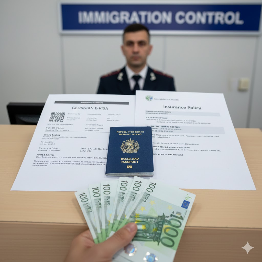 Getting the visa is only step one. When you arrive at Georgian Immigration Control, you must present the following to the border officer: