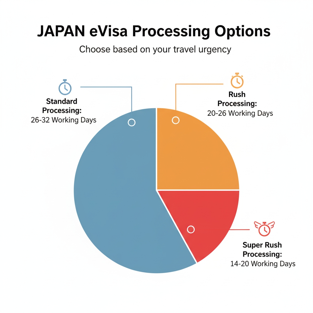 When applying for your eVisa, you can choose from three convenient processing options based on how quickly you need your visa approved: