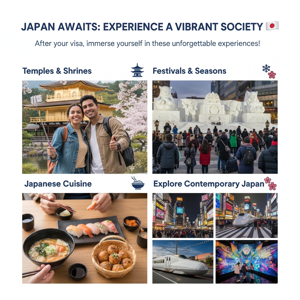 After you get your visa, you will have a chance to be part of Japan vibrant society: