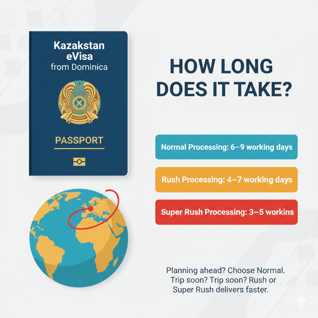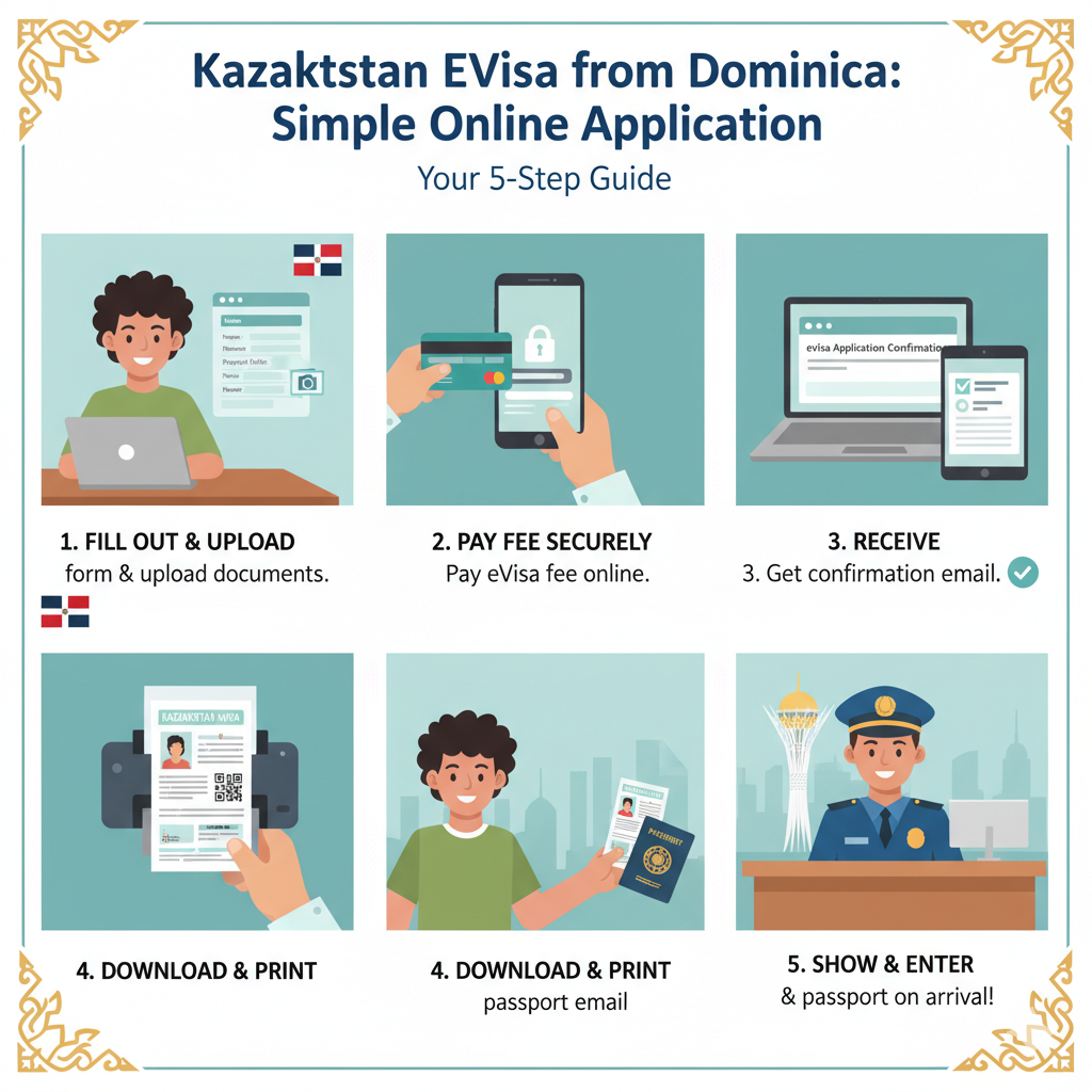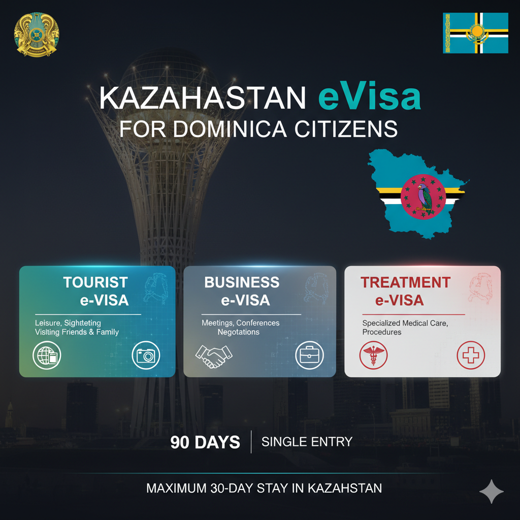 Traveling from Dominica to Kazakhstan might sound like a faraway dream, but with the Kazakhstan eVisa, itâs easier than ever to make that trip a reality. Forget about paperwork, long waiting lines, or confusing procedures â now, Dominica citizens can apply online, get approval by email, and land in Kazakhstan with confidence.