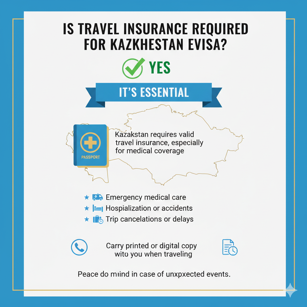 Yes, travel insurance isnât just smart â itâs essential. Kazakhstan requires visitors to have valid travel insurance, especially for medical coverage.