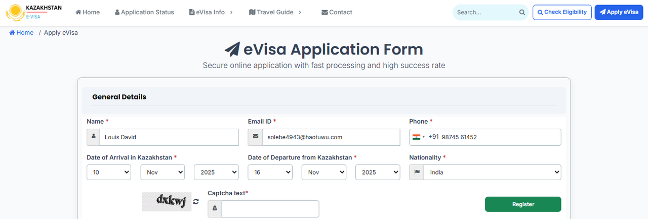 Once submitted, you will be able to track your Kazakhstan eVisa Application Status over the Internet. The updates will be also emailed to your registered email.