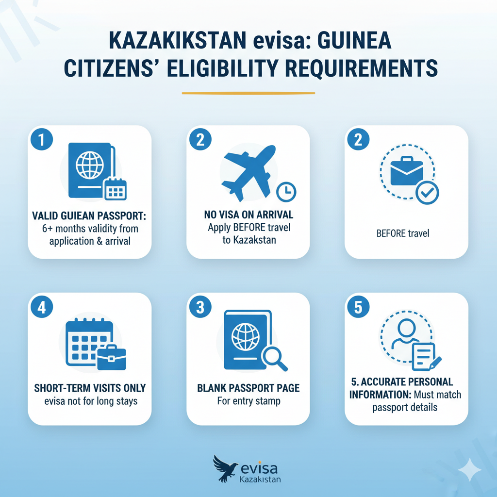 Traveling from Guinea to Kazakhstan has become simpler with the digital transformation of the visa system. The Kazakhstan eVisa now enables travelers from Guinea to apply online without needing to visit any physical office. This user-friendly guide provides all the key details for applying Kazakhstan eVisa from Guinea, including visa types, requirements, processing time, and other essential travel-related information.