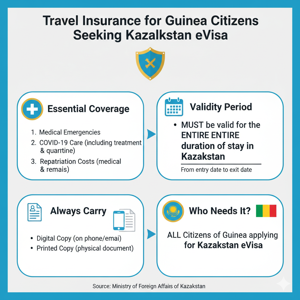 All citizens of Guinea who are seeking to get a Kazakhstan eVisa are required to purchase travel insurance.