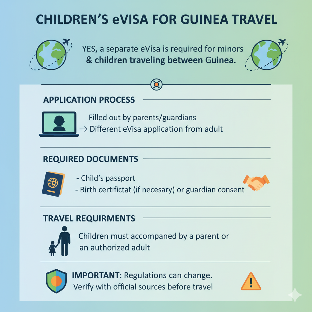 The minor and child, who travel between Guinea, should have a different eVisa application.