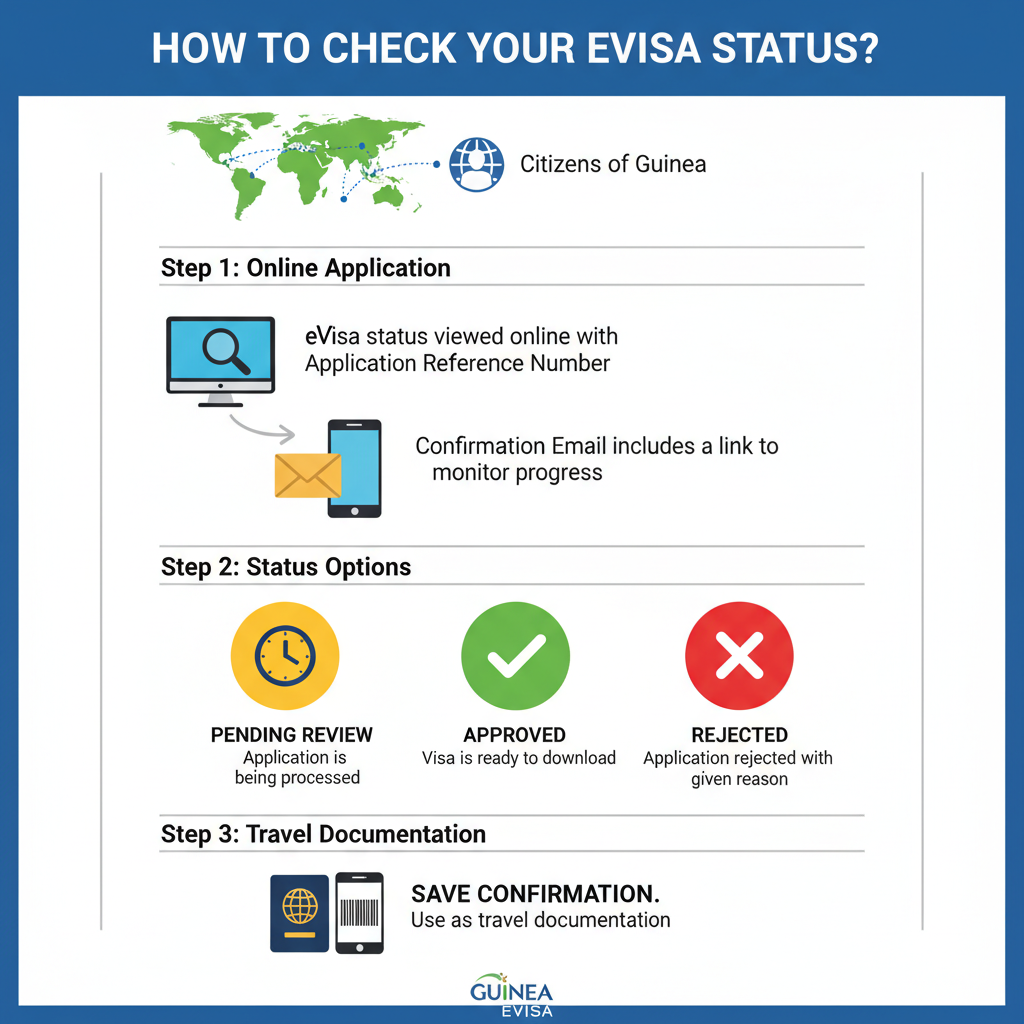 The eVisa status can be viewed online by the citizens of Guinea with the help of the application reference number.