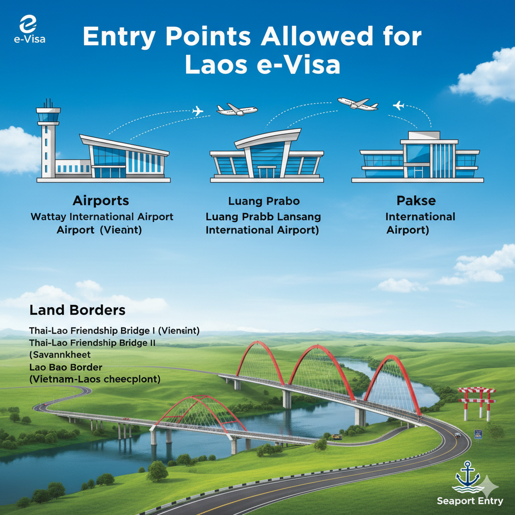 Permission to enter at different locations across Laos includes airports, seaports, and land borders that have been authorized.