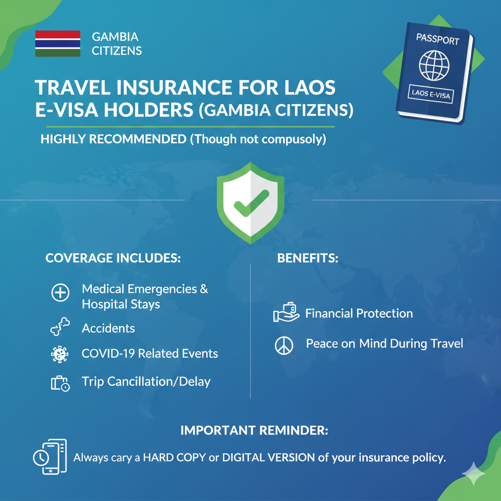 While the insurance is not a compulsory requirement, it is highly recommended for citizens of Gambia who are planning to go to Laos.
