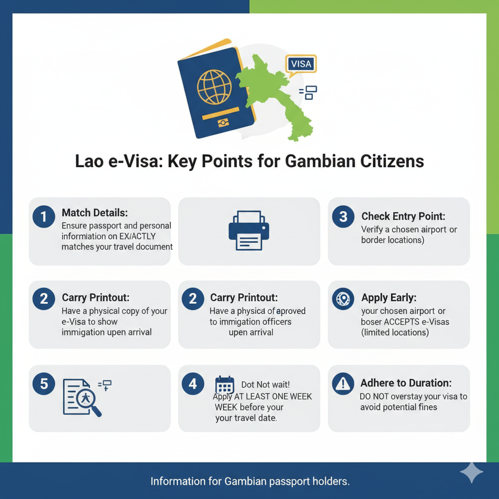 For Gambian citizens, applying for the Laos e-Visa documents typically requires: