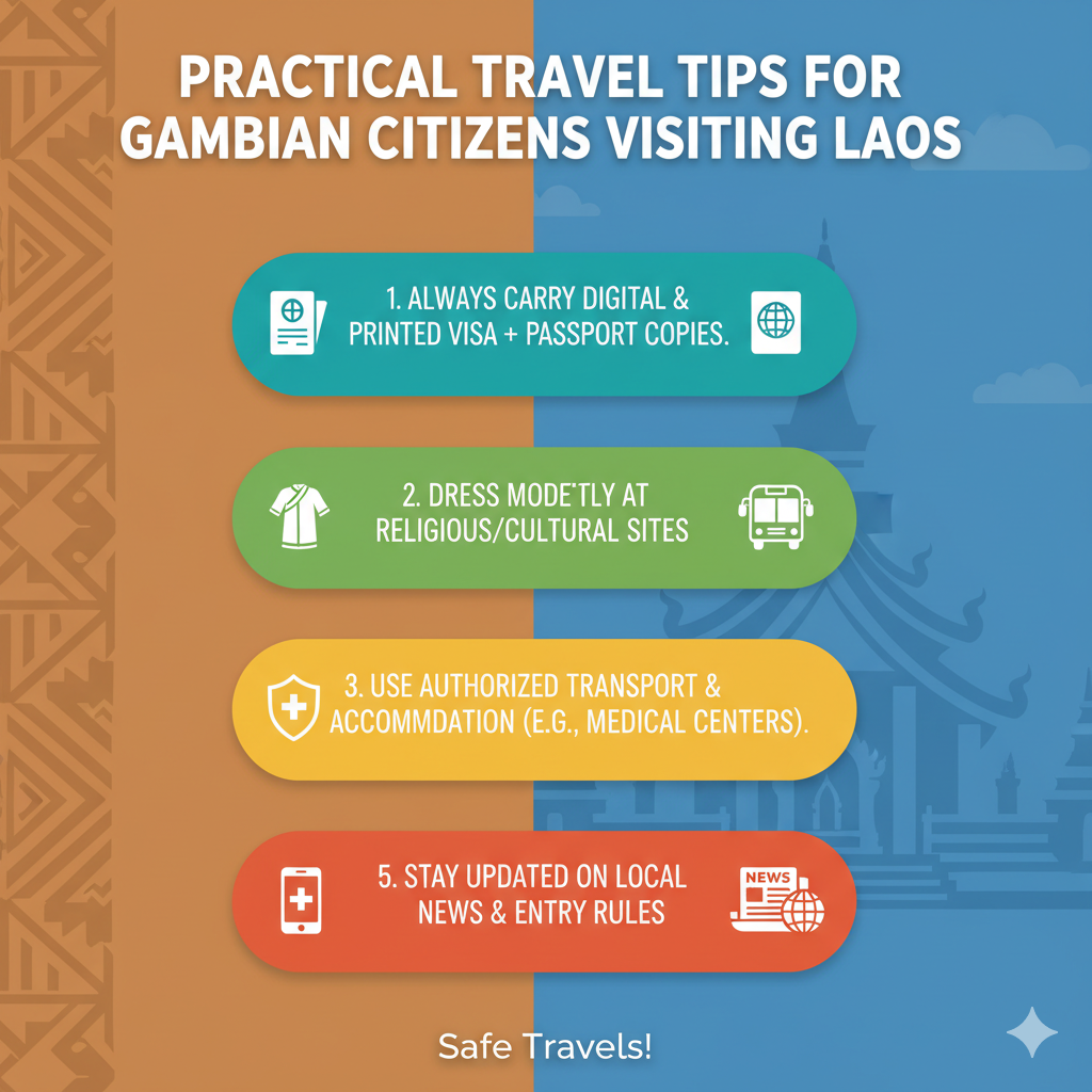 The Laos e-Visa has cleared the way for Gambian citizens to travel and understand the charm of Laos without stressing over paperwork. It only requires a valid passport, a recent photo, and an online payment, and then you can apply for a Laos e-Visa from Gambia and get the green light in a few days. No matter if you come by air, water, or land, the system is designed to provide you with less hassle and more convenience at the time of arrival. Responsible planning, insurance, and respect for visa validity are some of the things that travelers to Laos need to be aware of in order to have a pleasant journey.