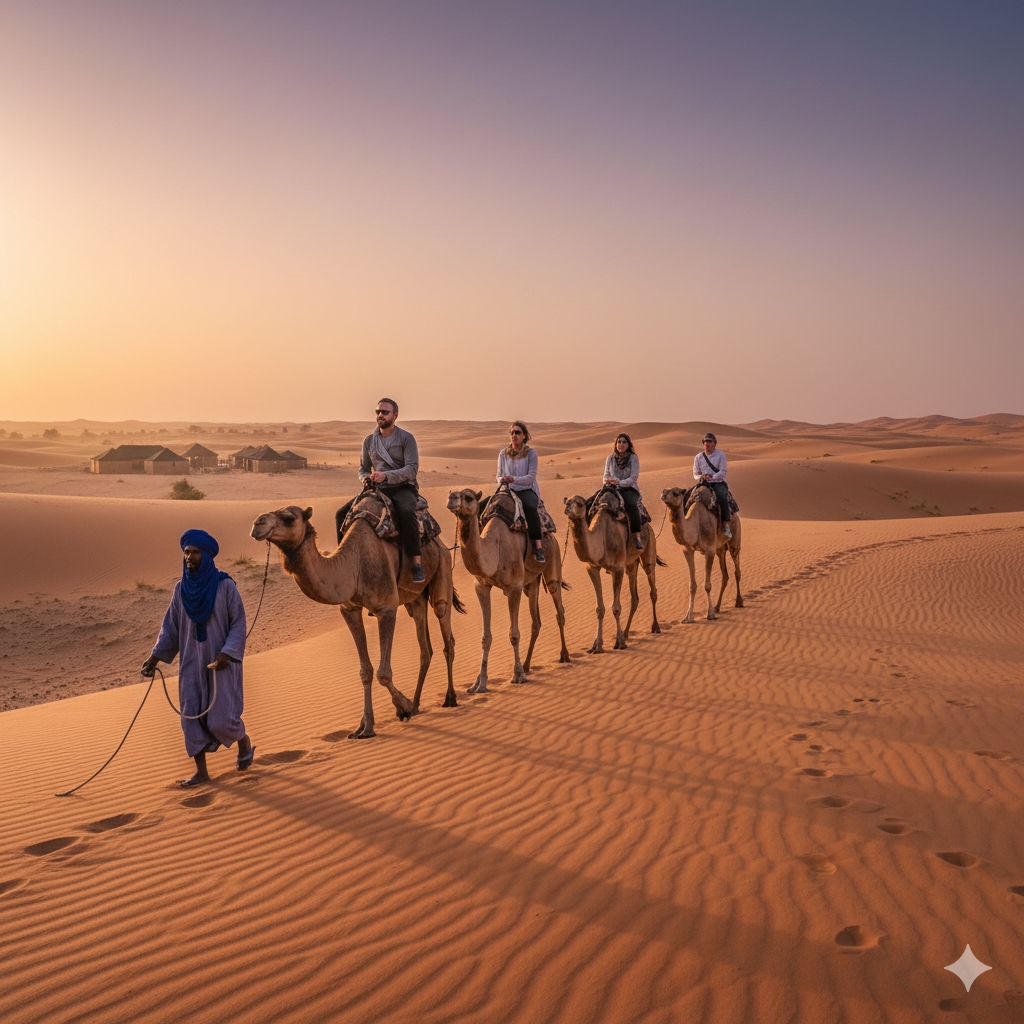 Head east from the Atlas Mountains to experience sweeping sand dunes, camel rides, and desert-night skies.