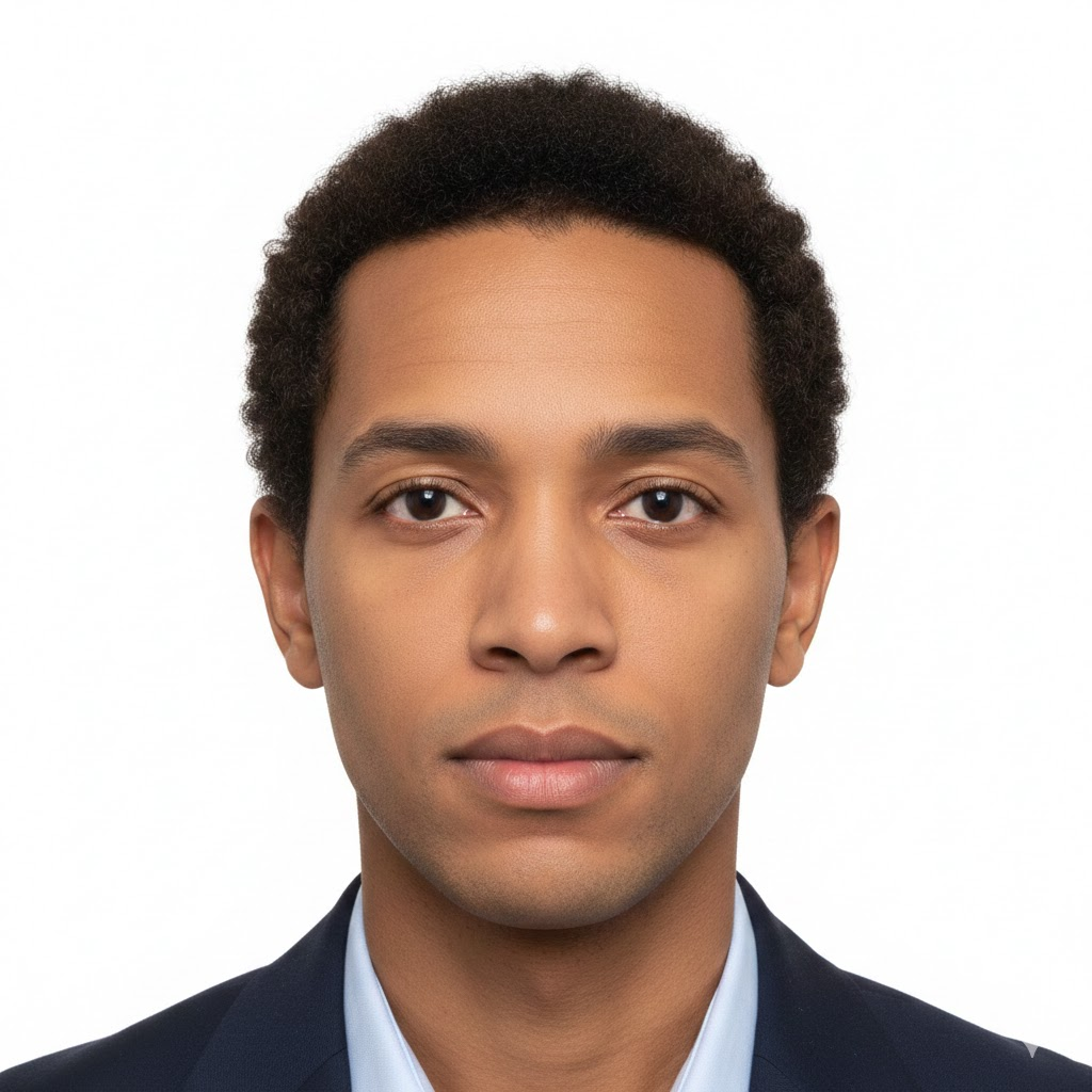- Digital Passport-Style Photo: A recent color photo (headshot) taken against a plain white background, meeting standard passport photo criteria.