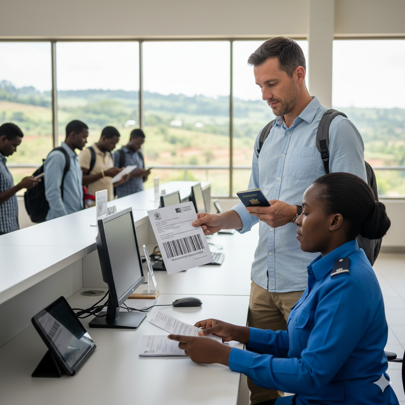 You should print a copy of the eVisa and carry it with you when travelling to Rwanda. Itâs advisable to have a physical printout (even if a black & white version is acceptable). On arrival, youâll present your passport and the eVisa printout at immigration.