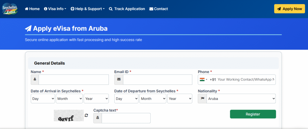 Applying for the Seychelles eVisa Application from Aruba is very easy if you follow the steps correctly. Here's the step-by-step guide: