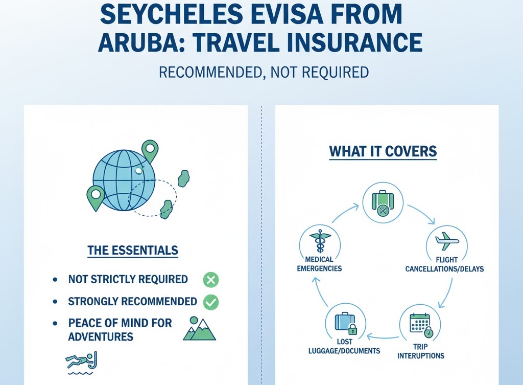 Travel insurance is not a strict requirement for Seychelles eVisa, but it is strongly recommended for all travelers from Aruba.