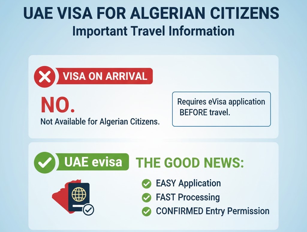 No, Algerian citizens are not eligible for a Visa on Arrival in the UAE. This means you must apply for a UAE eVisa before traveling.