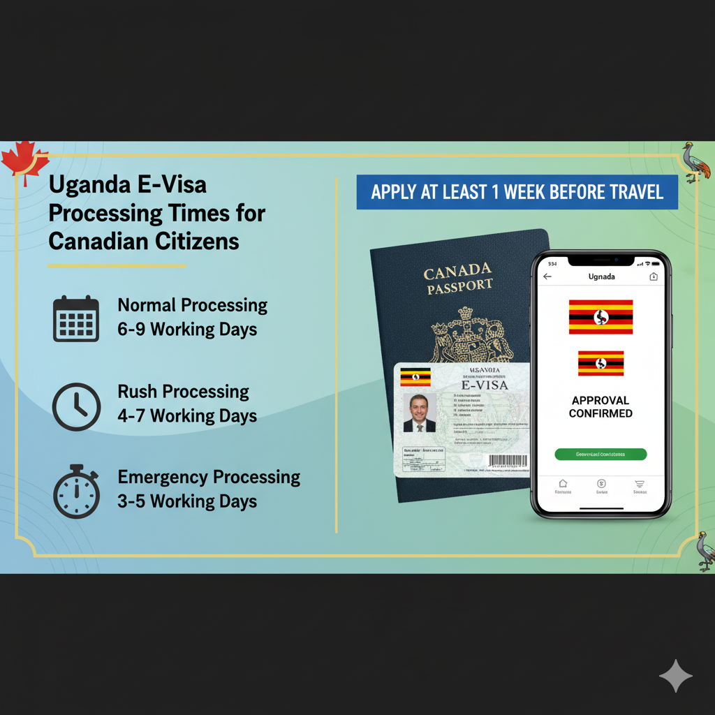 When Canadian citizens apply for the Uganda e-Visa from Canada, the processing time depends on the visa category.