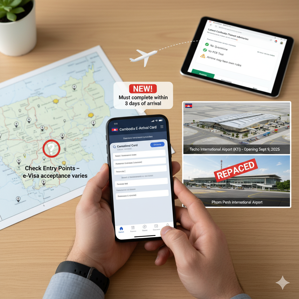 In 2025, the Cambodia eââ¬âArrival Card (also called ââ¬ÅCeAââ¬Â) must be completed online (usually within seven days of arrival) for all arrivals, even when you have an e-Visa.