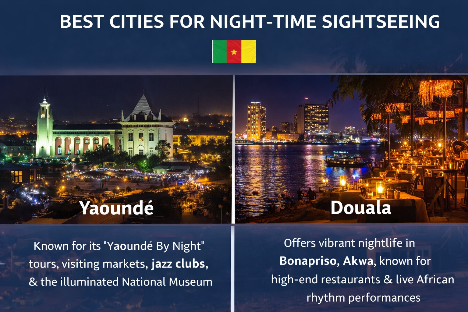 If you want to experience Cameroon after dark, Yaoundé and Douala are the top choices.