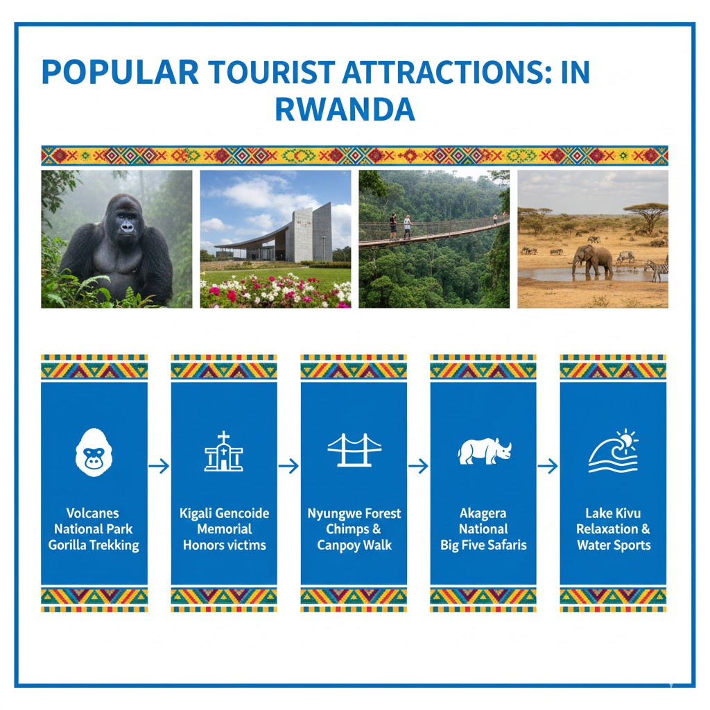 - Lake Kivu: A stunning freshwater lake perfect for relaxation and water sports.