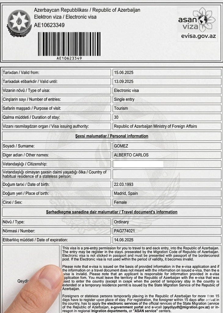 Once your eVisa is approved, the document will specify a "Validity Period" (90 days). You can enter Azerbaijan any time within this window, as long as your arrival date is not before the "Valid From" date and your departure is before the "Valid Until" date. You do not have to enter on the exact date you listed in your application, providing flexibility for flight changes.