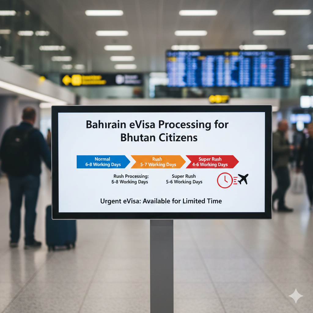 The average processing time of the Bahrain eVisa among Bhutan Citizens is 6-8 working days. There are however expedited options-
