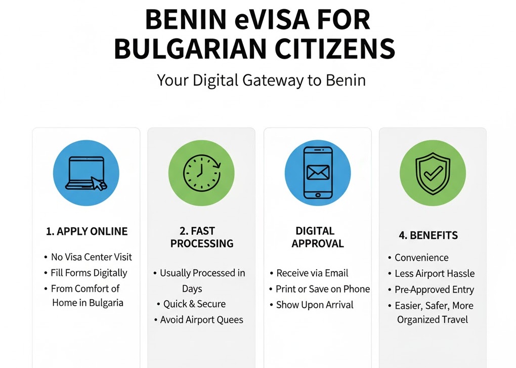 A Benin eVisa is an electronic visa that allows travelers to enter Benin without visiting any visa center. Instead of filling out forms on paper and waiting in line, you can apply online and receive your visa digitally. This means you can plan your trip from the comfort of your home in Bulgaria.