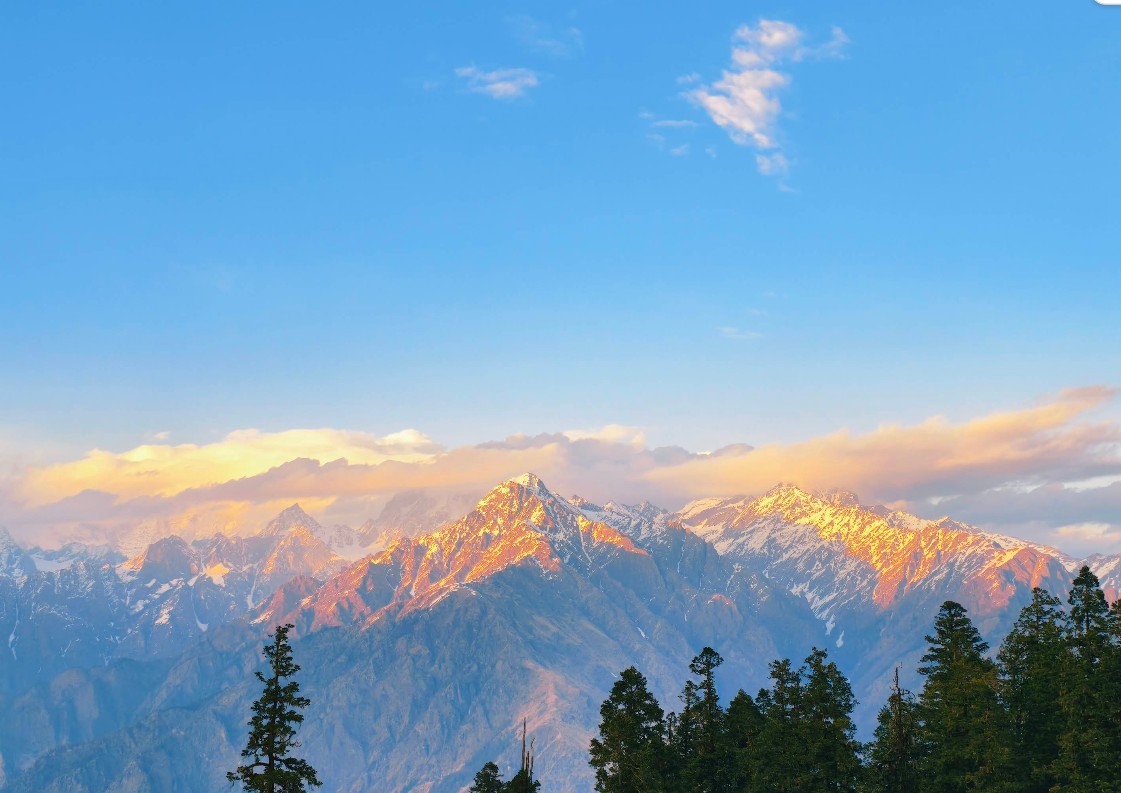 Spring mornings here feel magical. Clear skies reveal peaks like Chaukhamba, Neelkanth, and Bandarpoonch. The forest trails bloom with seasonal flowers, and the sunrise views remain the biggest highlight.