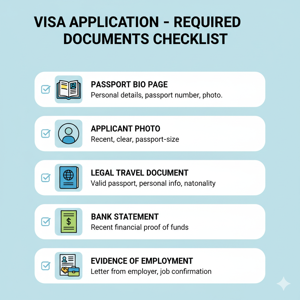 Get your documents ready -Keep your valid passport, digital photograph and your travel papers ready.