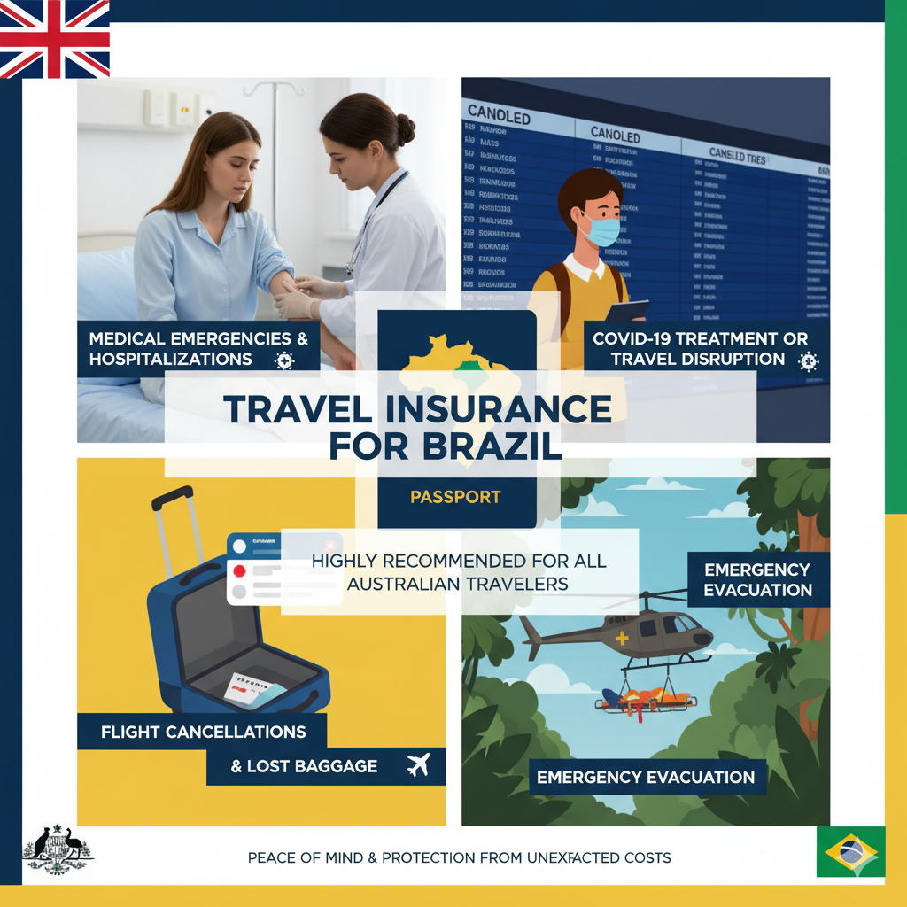 While not mandatory, itâs highly recommended that all Australian travelers obtain comprehensive travel insurance before visiting Brazil.