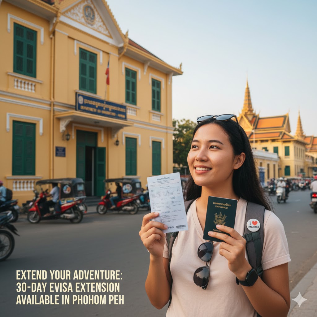 This extension cannot be done online. You must do it in person at the Department of Immigration office in Phnom Penh. Alternatively, many reputable travel agencies in Phnom Penh or Siem Reap can handle the process for you for a small service fee.