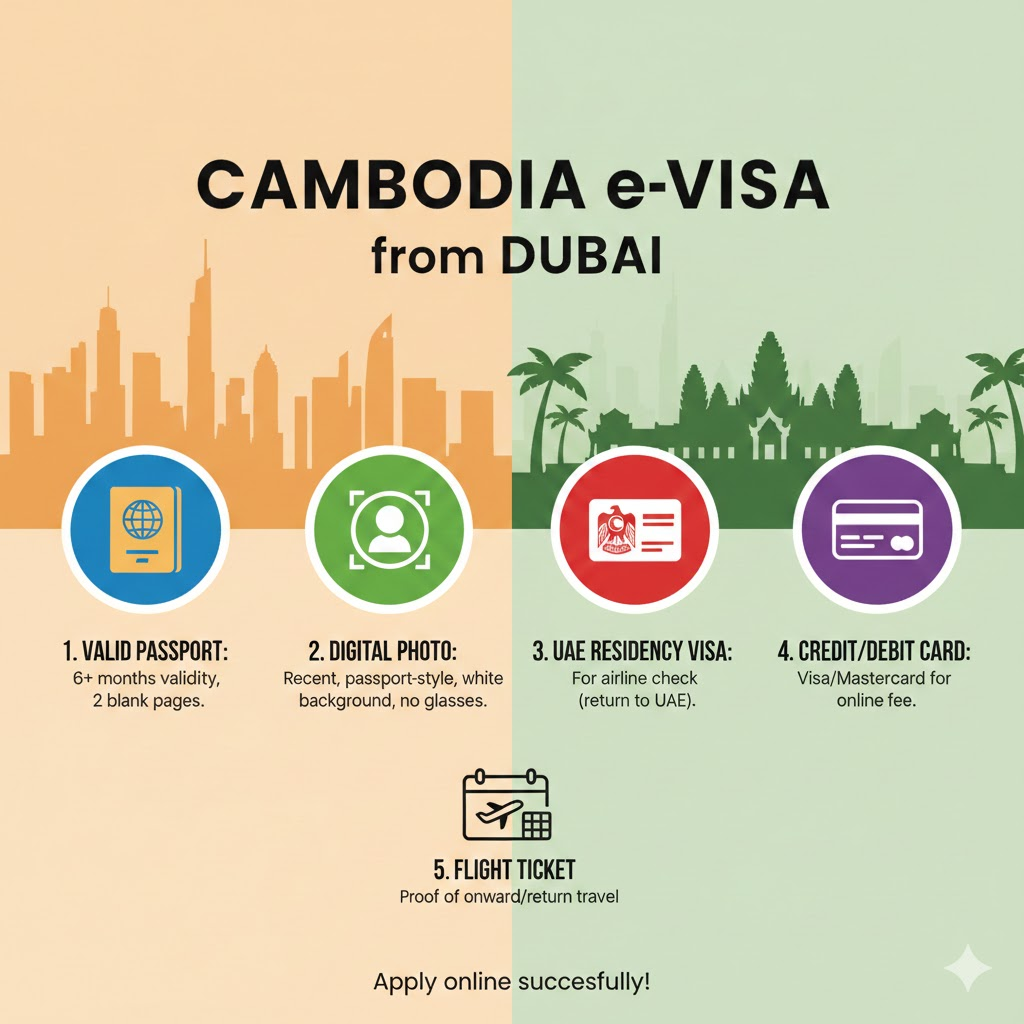 - UAE Residency Visa: While not strictly required for the Cambodian application itself, airlines in Dubai (Emirates/FlyDubai) often check your UAE visa validity to ensure you can return to the UAE.