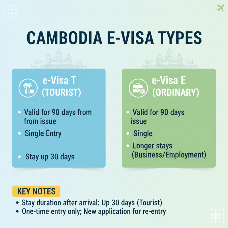 - e-Visa T (Tourist) & e-Visa E (Ordinary) β both valid for 90 days, single entry.