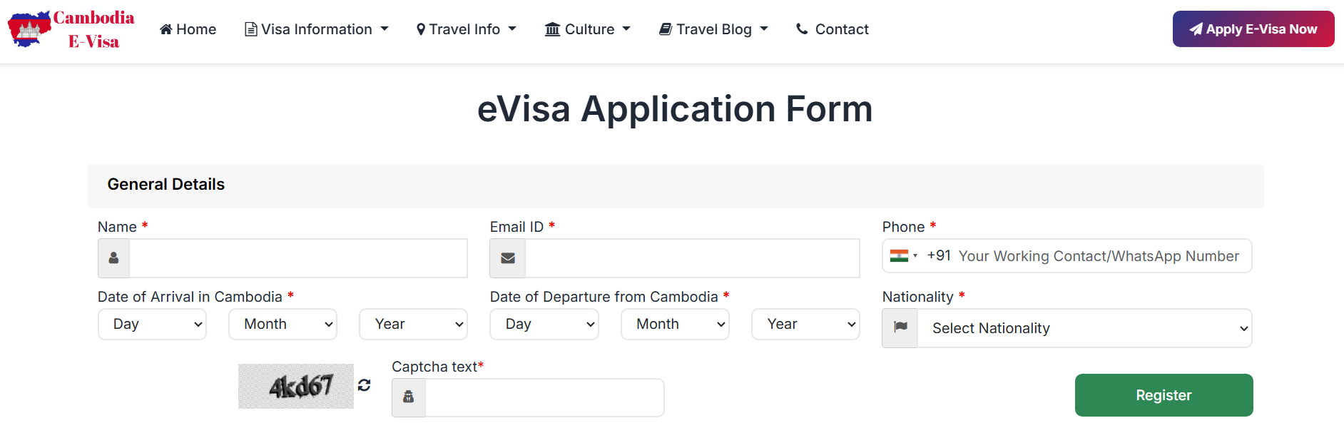 The Cambodia evisa application form process is fully digital. You will need to provide: