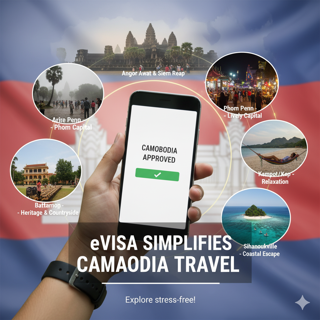 The eVisa eliminates stress and allows tourists to enjoy Cambodiaâs cultural and natural wonders.
