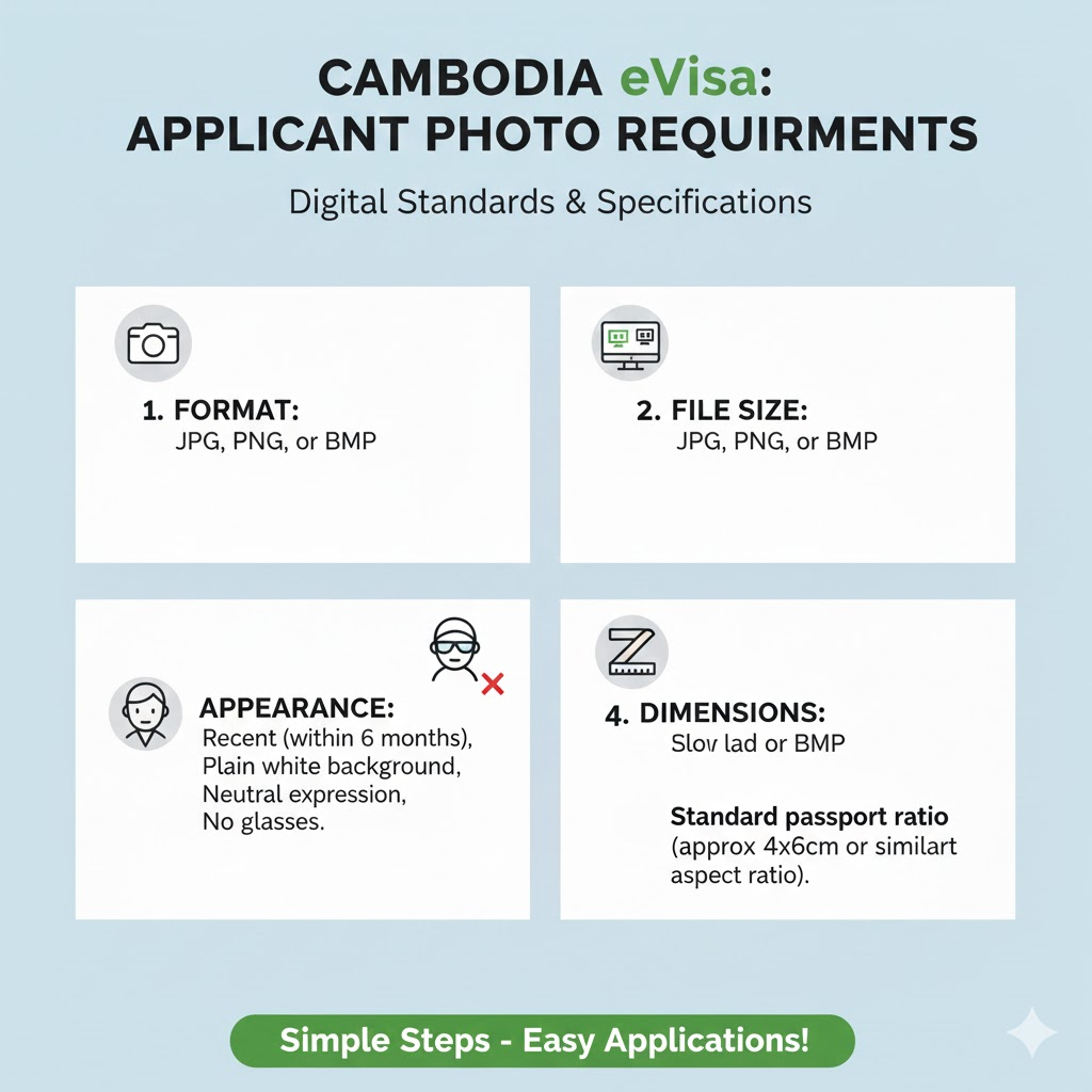 Your "Applicant Photo" must meet these digital Cambodia Visa Photo Requirements: