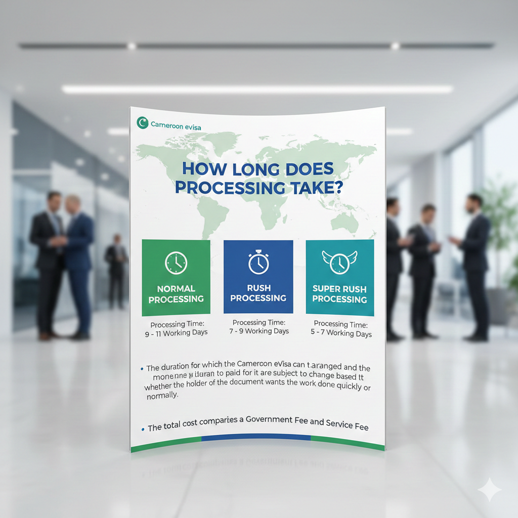 Are you in need of your Cameroon eVisa quicker than usual? This is the "Processing Fee" place. When you choose "Rush Processing" or "Super Rush Processing" to accelerate things, a supplementary fee will be levied for that expedited service. That extra fee is mostly proportional to the speed with which you want to get the visa.