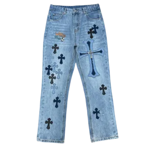 The Chrome Hearts Vintage Denim Jeans appeal to enthusiasts who enjoy the worn-in, distressed look. They incorporate traditional denim styles with contemporary streetwear elements, and they appeal to individuals who enjoy classic yet avant-garde fashion.
