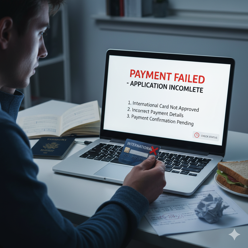 Payment of an online fee is part of the application process. Mistakes at this stage will leave your application incomplete.