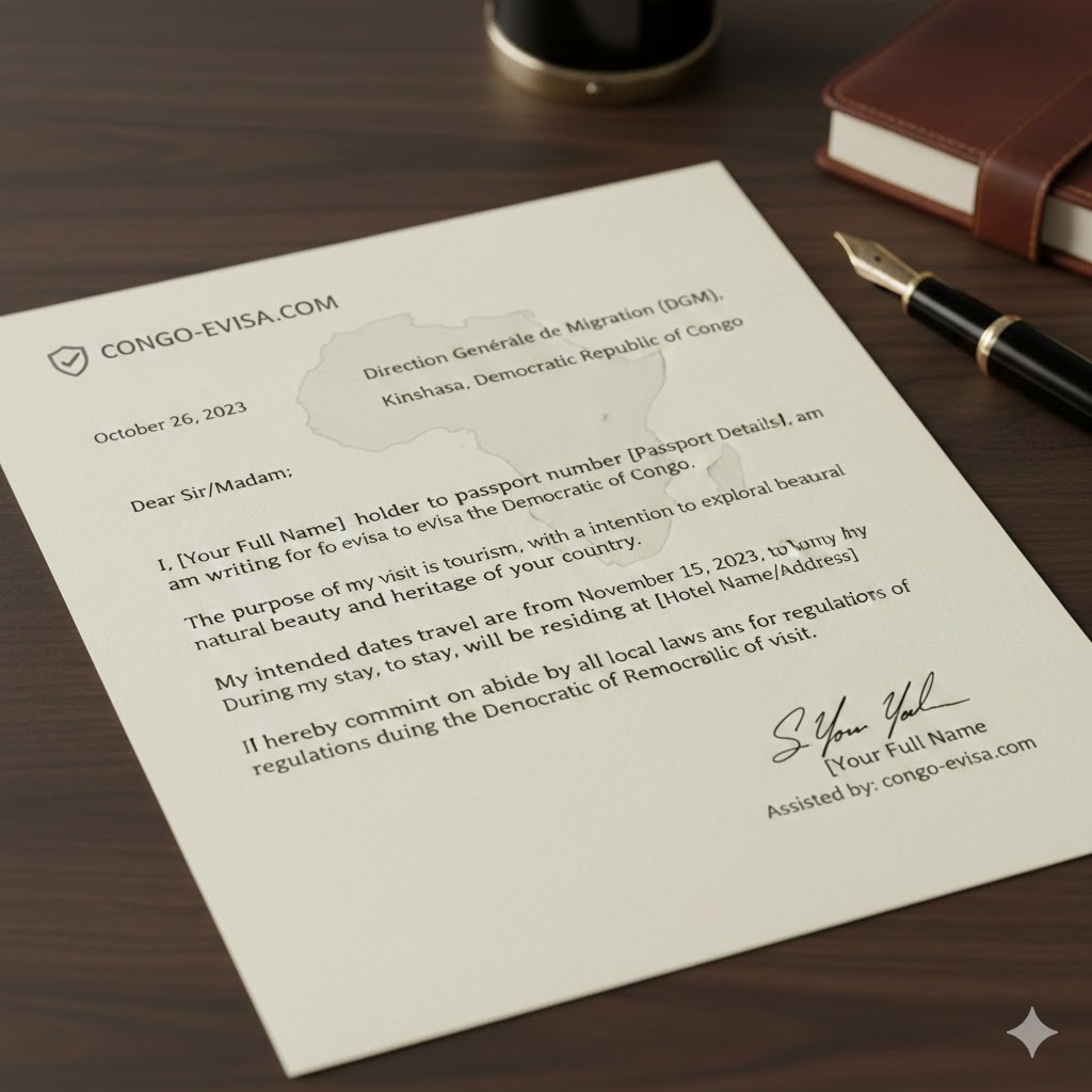 One unique requirement for the DRC eVisa is a Formal Application Letter addressed to the Direction Générale de Migration (DGM). This personal letter should clearly state: