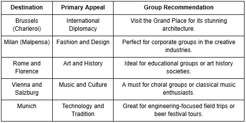 Expanding beyond France, the Air Corsica destinations list 2026 includes several key European cities that are perfect for international group ventures.