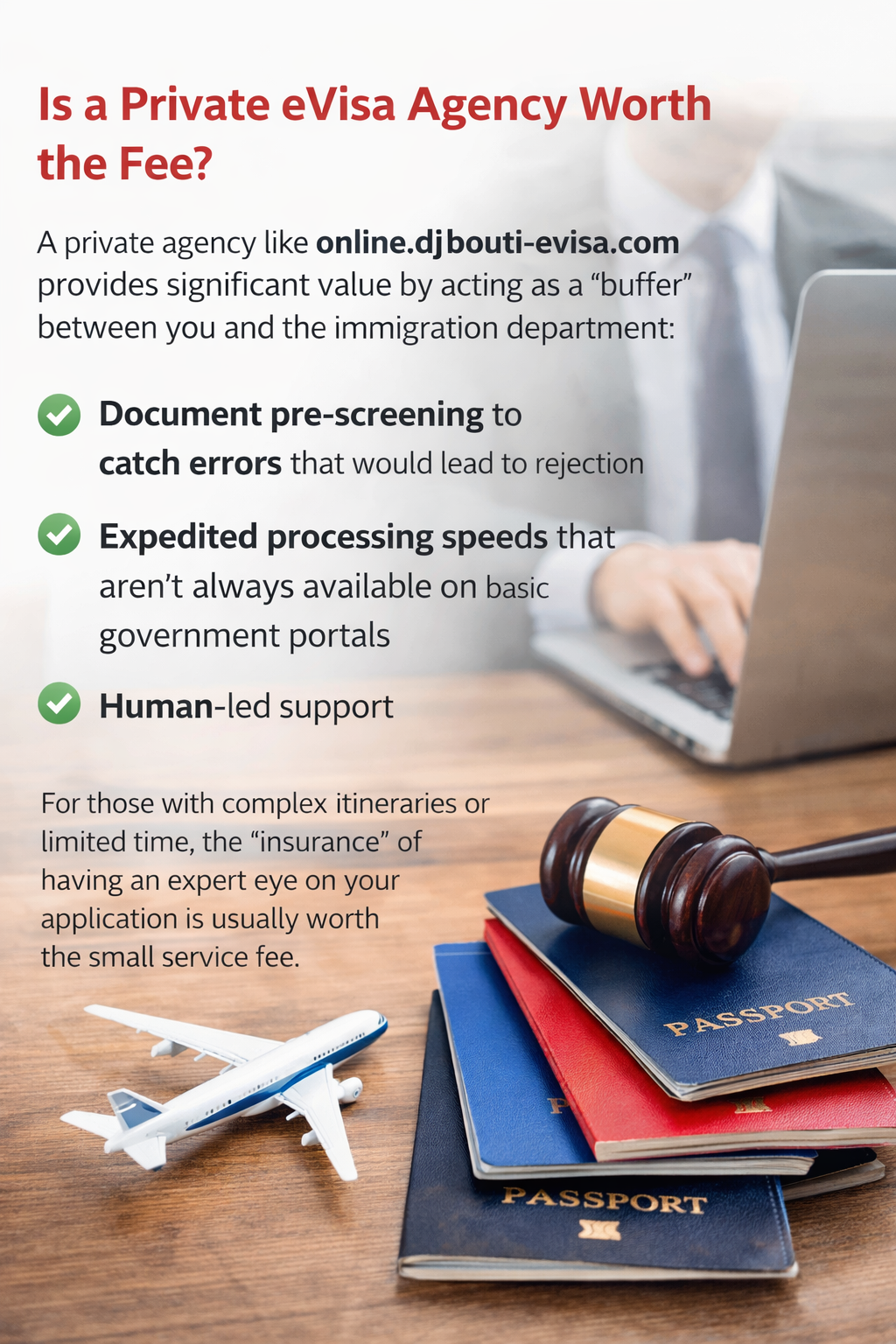 Many travelers weigh the cost of an agency fee against the official government price. A private agency like online.djibouti-evisa.com provides significant value by acting as a "buffer" between you and the immigration department. We offer document pre-screening to catch errors that would lead to rejection, expedited processing speeds that aren't always available on basic government portals, and human-led support. For those with complex itineraries or limited time, the "insurance" of having an expert eye on your application is usually worth the small service fee.