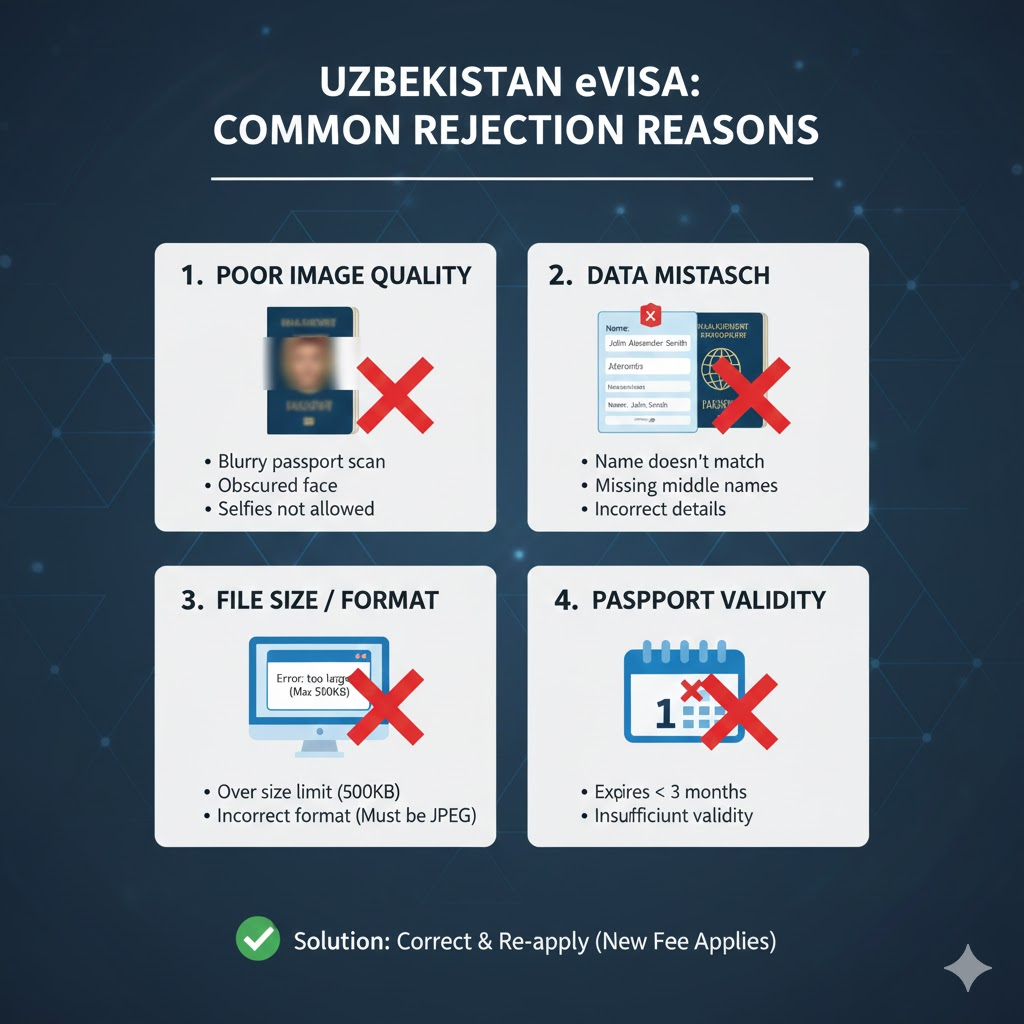 Visa rejections are rare for E-visas, but they happen. The search intent behind "rejection reasons" usually points to these common mistakes: