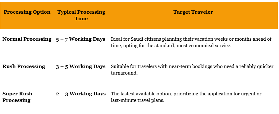 The Egypt eVisa system is highly efficient, particularly when using a service that offers prioritized handling. Saudi citizens can select the processing speed that best fits their travel timeline:
