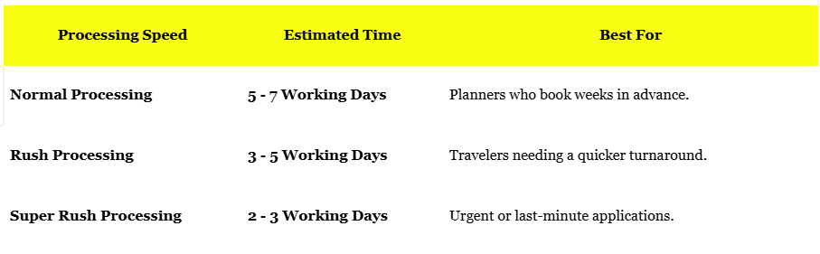 - Select Processing Time: Choose Normal, Rush, or Super Rush based on your urgency.