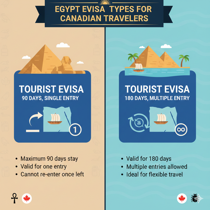 When applying for an Egypt eVisa, it’s important to understand the various types of visas available to you. For Canadian travellers, there are two main types of Egypt tourist eVisas that cater to different travel needs.
