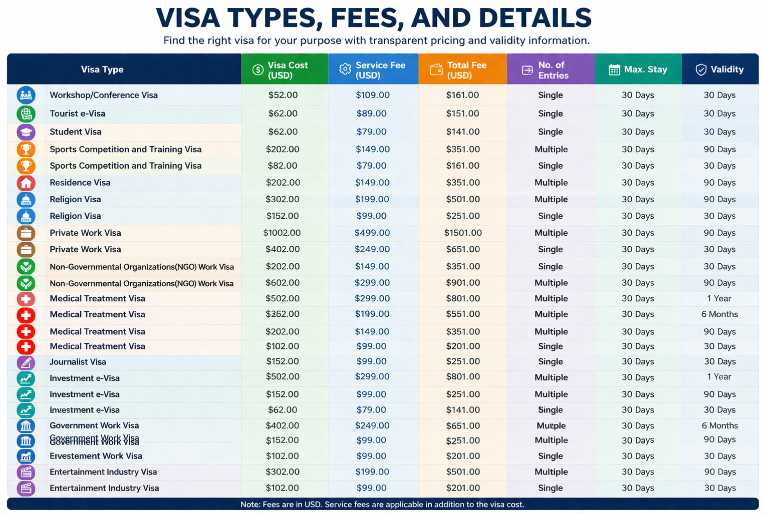 The maximum stay for almost all e-Visa types is 30 days per entry. However, the Validity (the period you have to use the visa) can range from 30 days to 1 year depending on whether you choose a single or multiple-entry option. It is important to enter the country before the validity period expires.